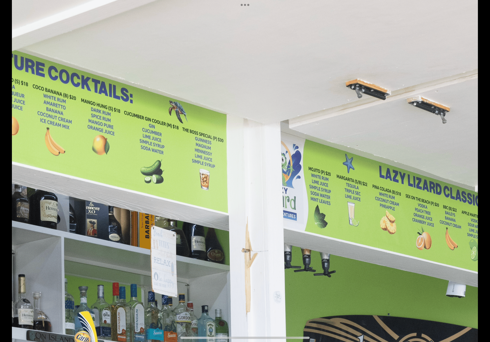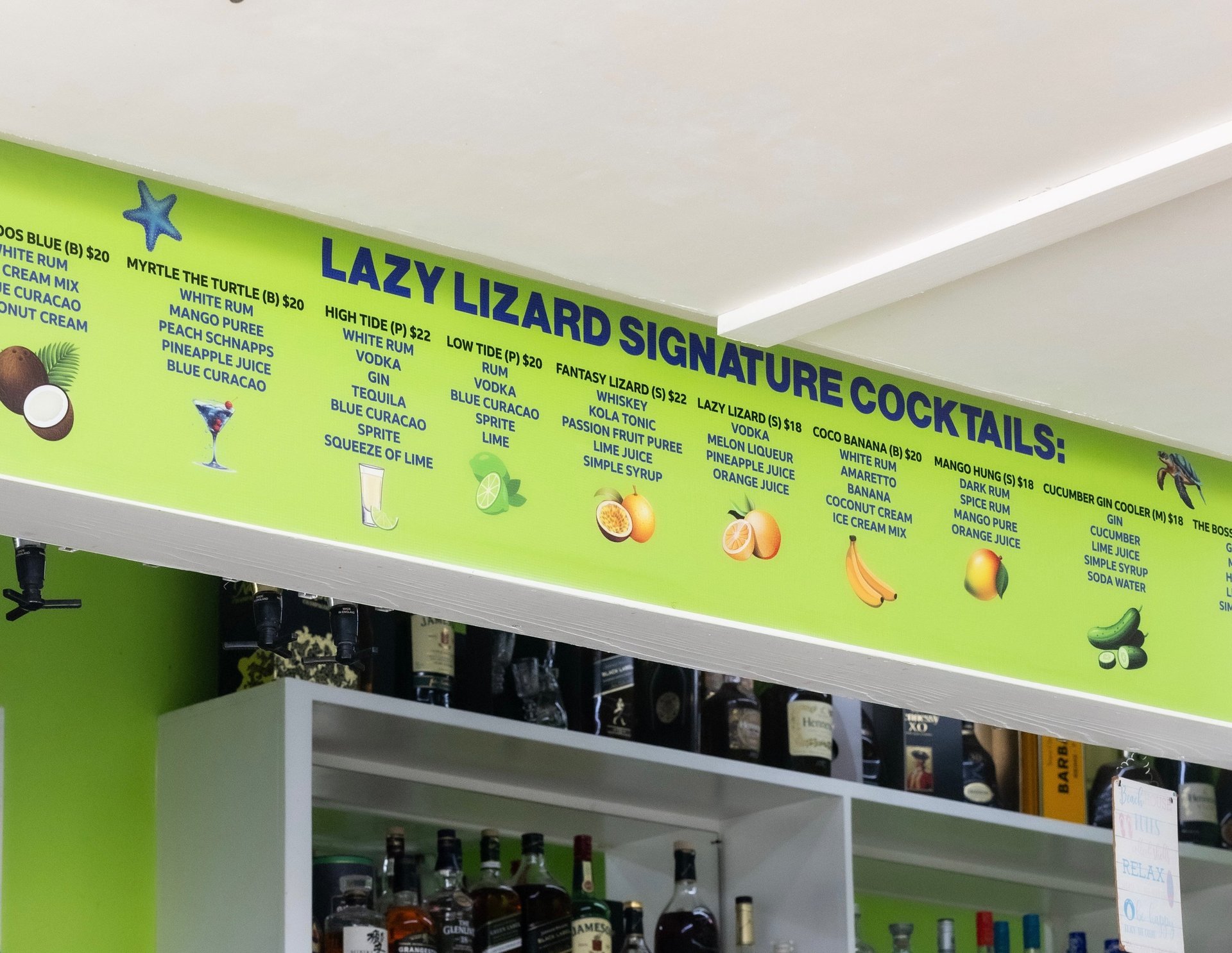 Lazy Lizard Beach Bar Menu